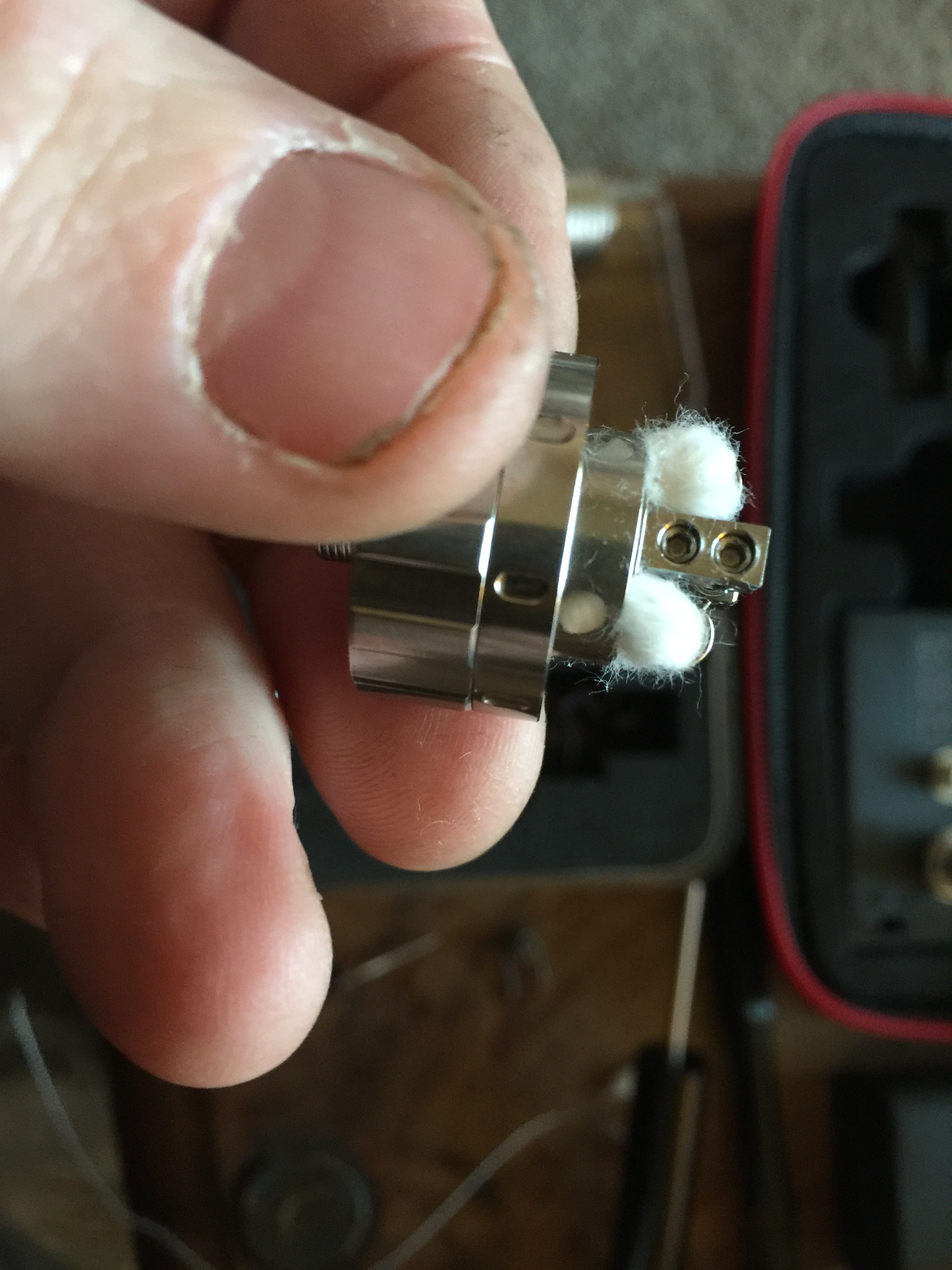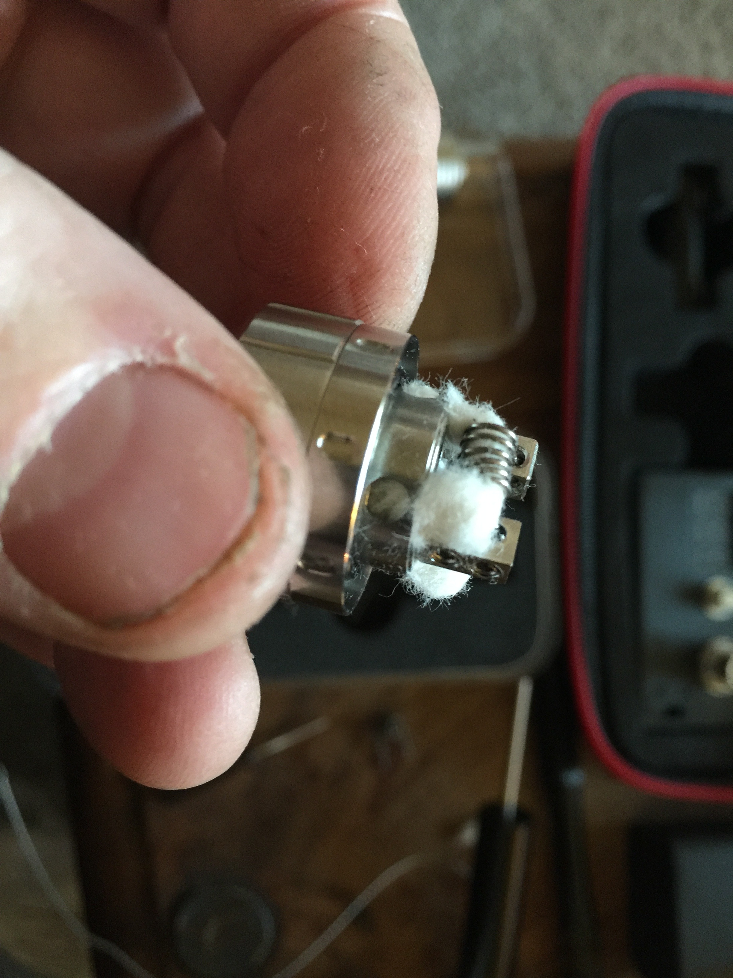 Bare in mind, new wicks can take a tank or so to bed in, to get past that cotton taste,then flavour will flood out............hopefully not out of the air holes!!