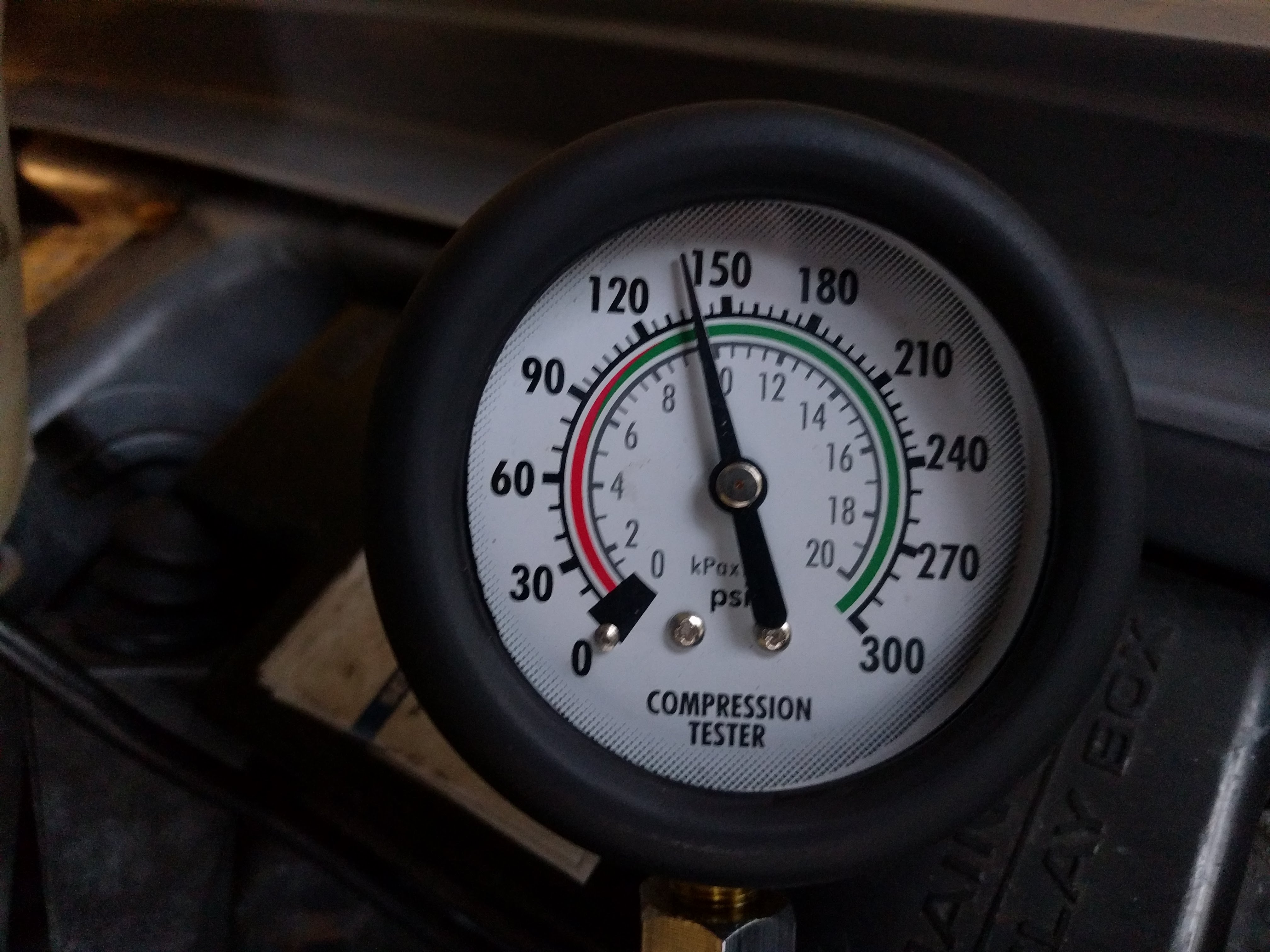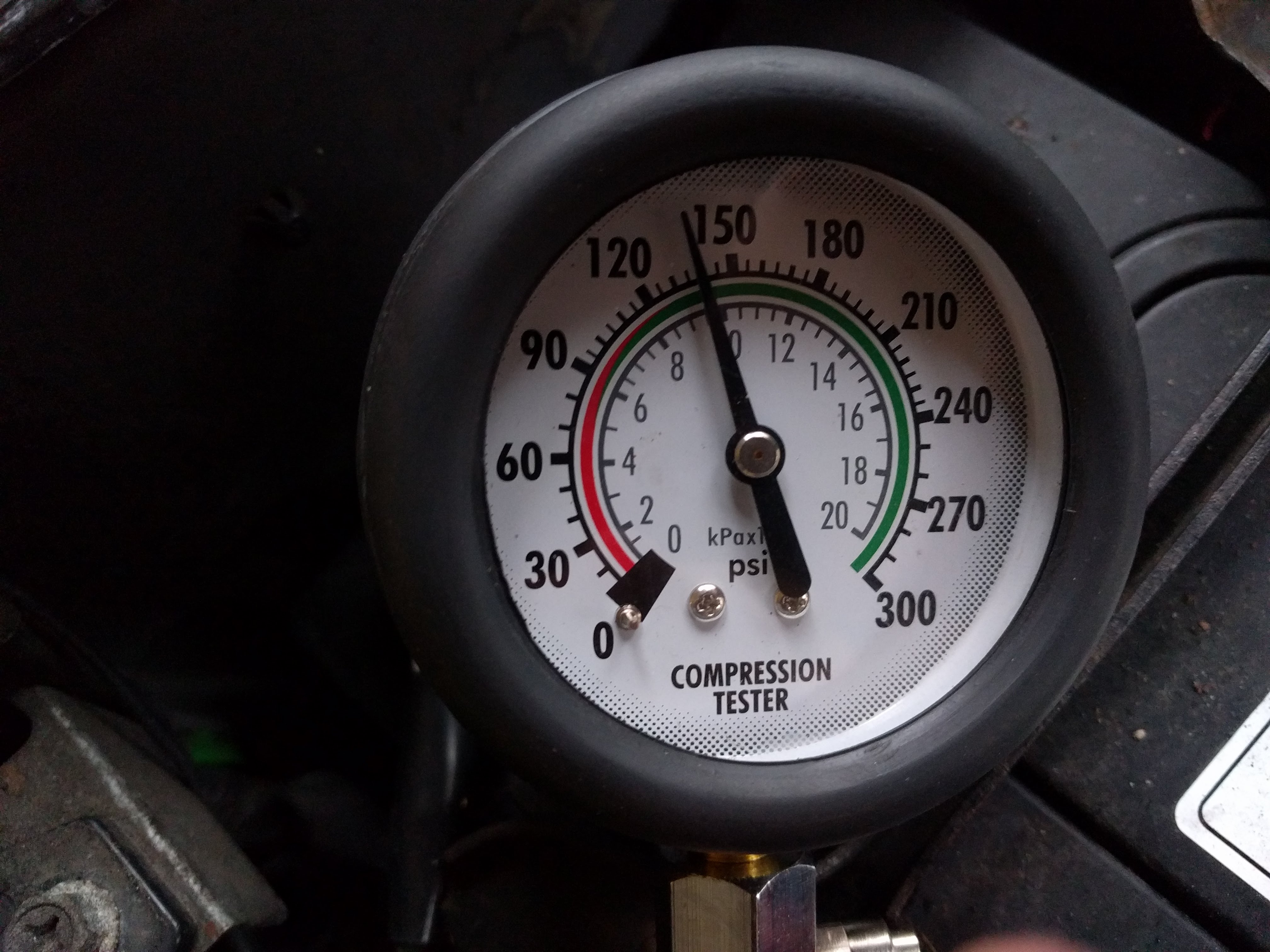 This is the first time I've done a compression test on it. So in theory it could have been like this the entire time. It is weird, cylinders 1 & 3 were both exactly 125psi, I mean absolutely bang on 125, then 2 & 4 were both absolutely exactly 140psi. I can't see how it would kill both pistons on the same bank to exactly the same extent that they're both 15psi low, or valves to be honest. You'd expect the damage to vary slightly and them give slightly different compression numbers.