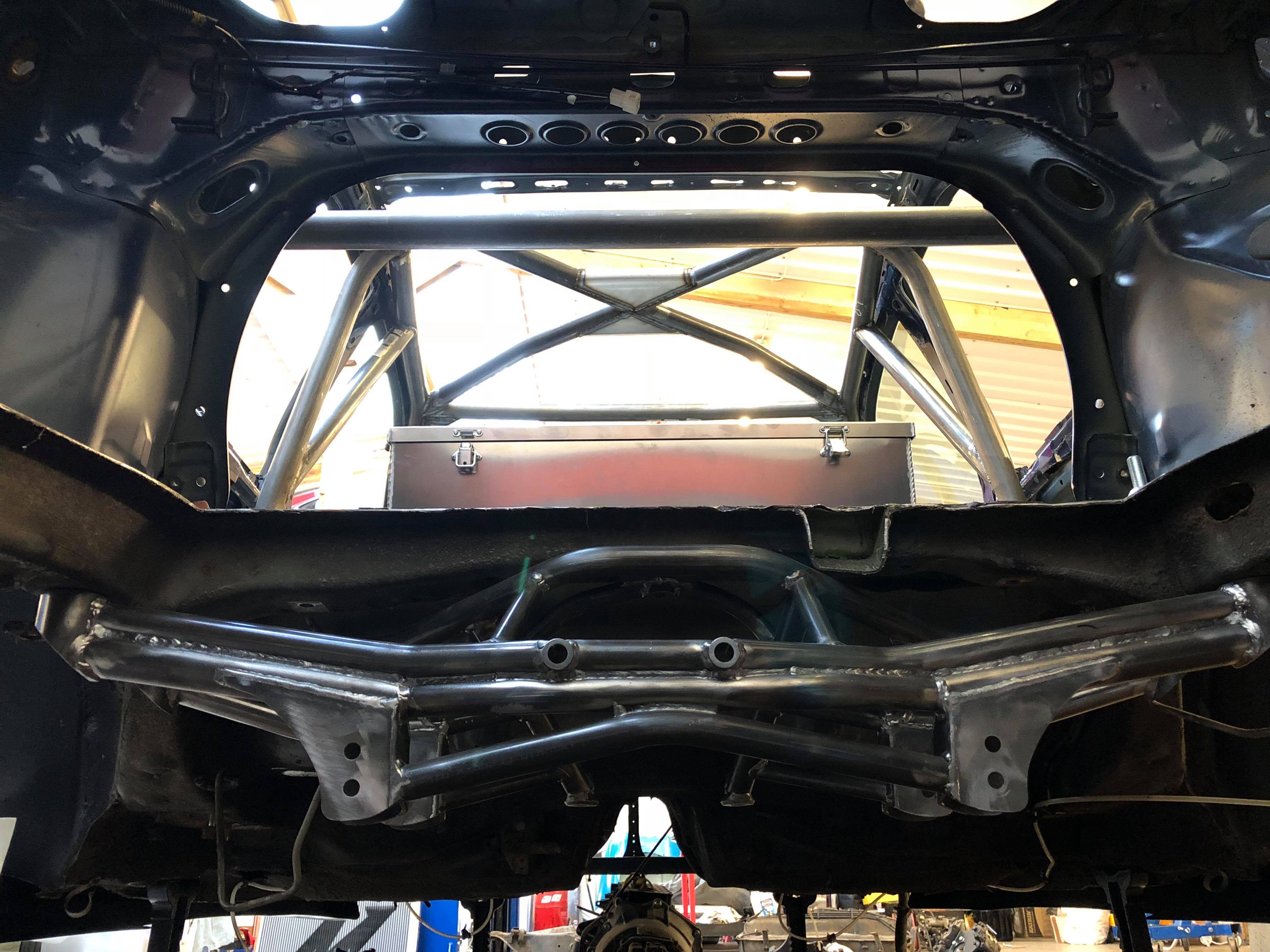 The airride suspension has gone and going back to coilovers, all sound proofing is out, metal roof has gone, boot floor gone, full fia cage going in.