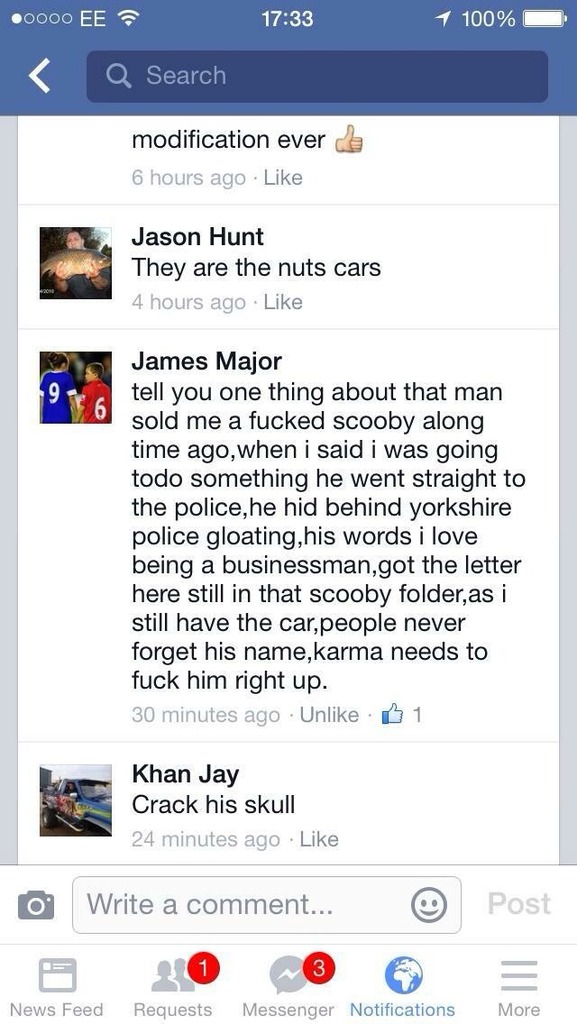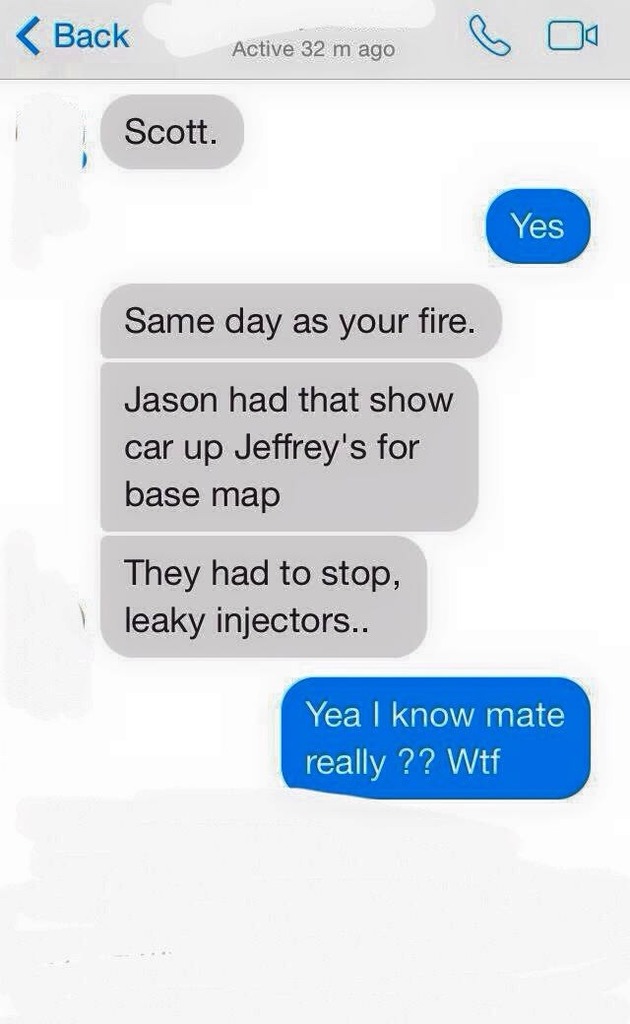 This guy did rip off a load of people on facebook but his car did set on fire, weather he was doing doughnuts or whatever the car shouldnt just self combust , ive seen a few comments saying about the 'true story' with regards to the car setting on fire, care to share? this certainly doesnt look great for scoobybits after they knew about a fuel leak so if there is another explanation i think it would be good for everyone if it was shared!