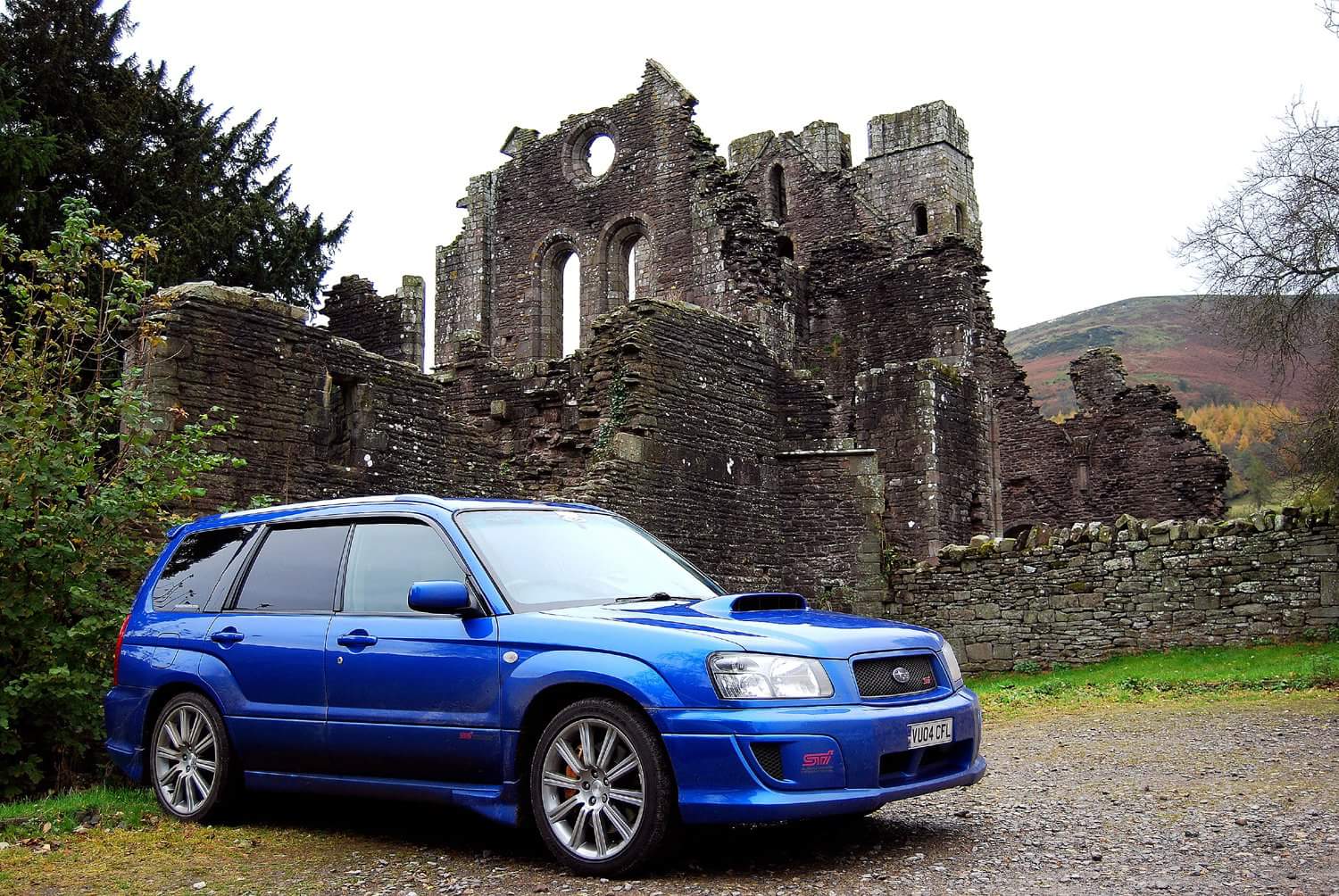 Ironically the jag has now been sold and the scoob is rather lost in there.