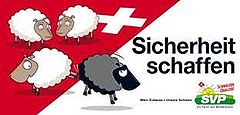 For information, the SVP party that pushed this recently used this poster for a recent Swiss referendum on immigration. I don't think it needs any translation!
