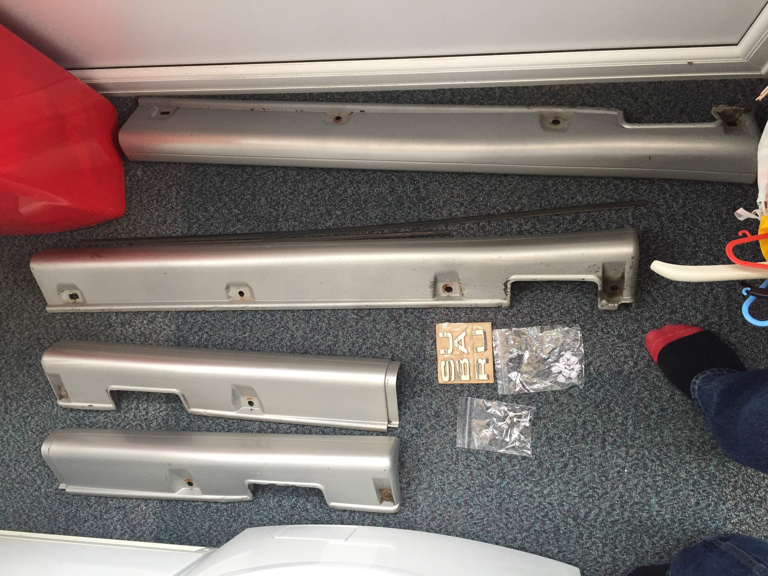 So if I hadn't have owned this car previous I'd have stayed clear with rusted arches!!! But my heart ruled my head, I knew I'd have to sort them!!! But didn't expect the sills to be bad!! Ah well, 300 quid to sort them. Don't have much choice as it wouldn't pass the MOT I've just booked in for the 5th Nov. Also been busy and finally found some 792 silver skirts on a Facebook group. Slight touch up and they will be good!! Only two clips missing and they came with the rubbers!! Managed to find some other bits needed on flea bay.