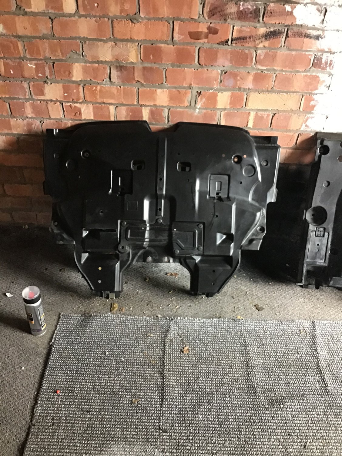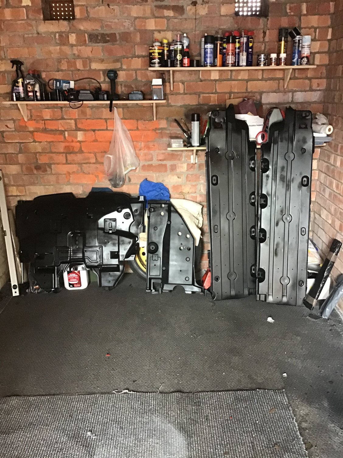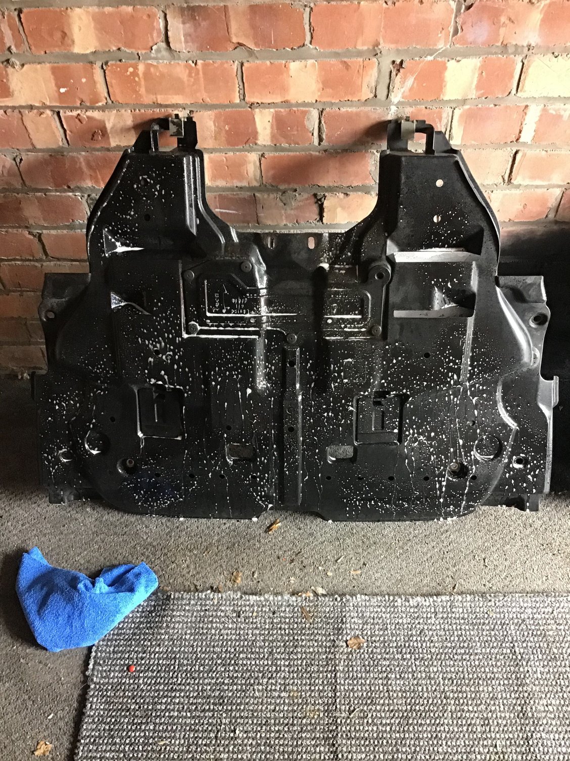 Decided to carry on cleaning the underside by spraying all the undertrays. The oil sump looked abit rusty too so I may get that replaced when the next service is done. These undertrays were removed a few weeks ago and cleaned at a car wash. They were left in the garage to dry off so I gave them a wipe over to remove dust