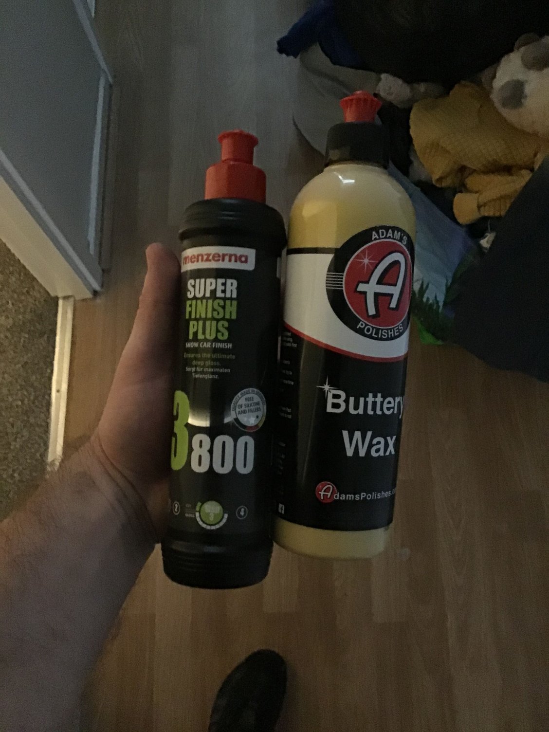 just thought I’d give you my thoughts regarding the menzerna and the adams buttery wax....firstly the menzerna-leaves a good deep shine but absolutely awful to remove. THE SHINE IS FANTASTIC BUT Got sick to death of wrestling with it trying to remove it plus whereas I’d normally use 4 or so microfibre cloths you will need 10-15 on a full car with this stuff. SHAME as it started off good. Got sick of it after the wings and bonnet 👎
