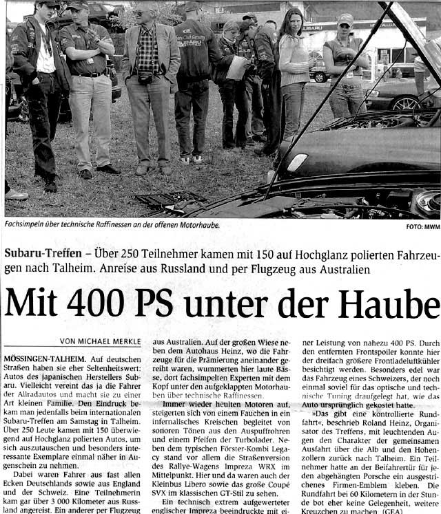 The article is good, but the photo is a bit naff. Why show a photo of a couple of people and no cars instead of a decent photo showing what a Subaru Impreza WRX looks like. Typical Deutsche - we have to print something, but lets be carefull not to tempt people away from their precious Mercedes and BMW's!