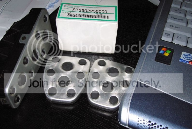 The picture below (also posted earlier) shows the pedals replaced from my MY03 namely the rest, clutch and brake pedals (gas pedal is not displayed as this remains on the car because the STI one simply sits on top of that):