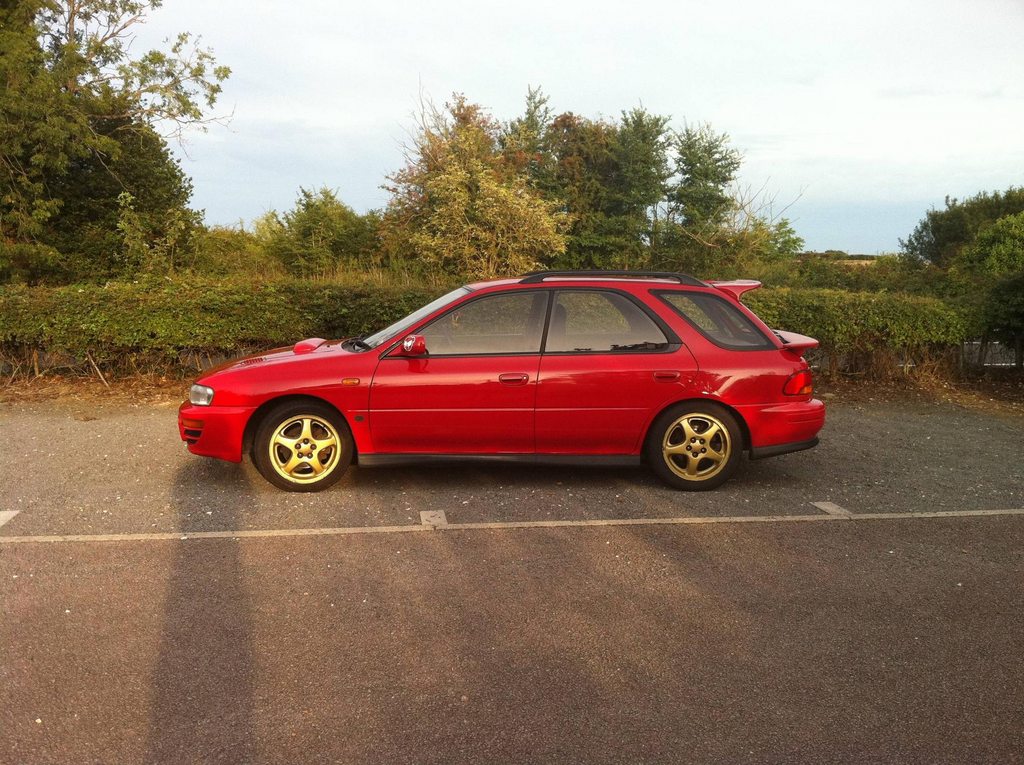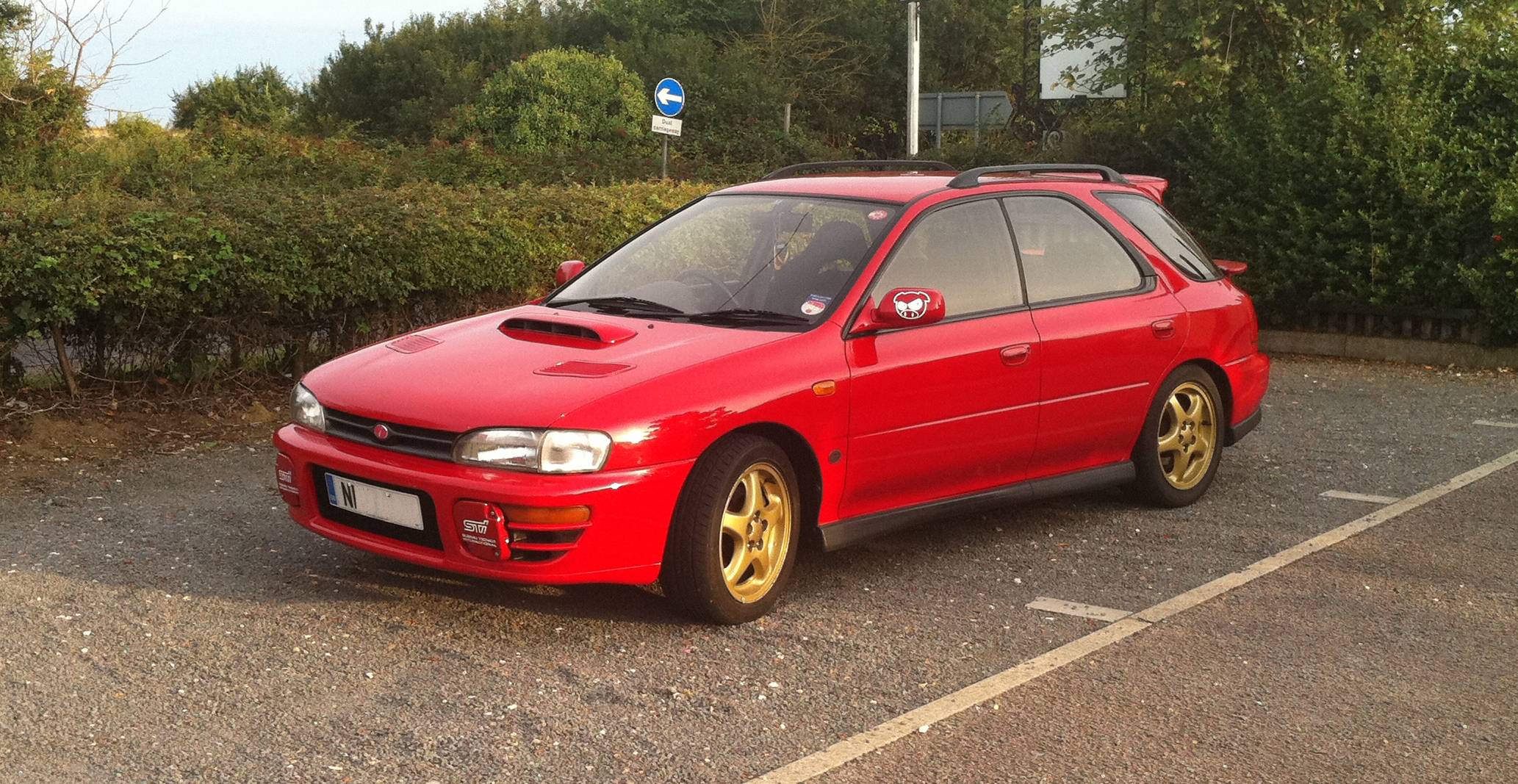 First Scoob. Completely standard 95 V2 STi with on 72k clocked.