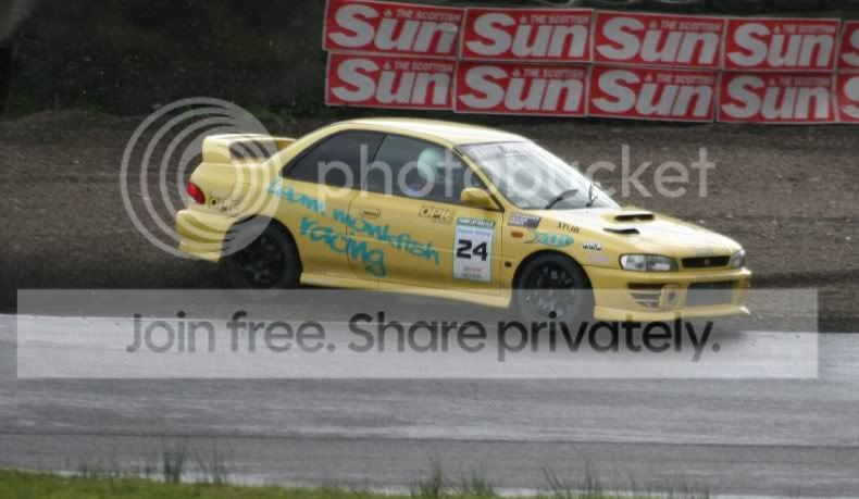2nd qualifying starts but its been raining, (pro session had been cut short for safety) and still is every now and then, I start out of the pits with a set of Toyo 888’s on, with a warm-up lap time of 1.07, everyone seems to be taking it easy so I step on it passing a few, then get quicker, 3rd lap I post a 1.03 (2nd fastest behind Mike Paynes Impreza for this session) but can go quicker, then I see Steve Darley in the Lateral Performance car and think I can over take him (which I could in 1 or 2 laps time), I closed quickly then locked up into the hairpin, sideways and off into the gravel.