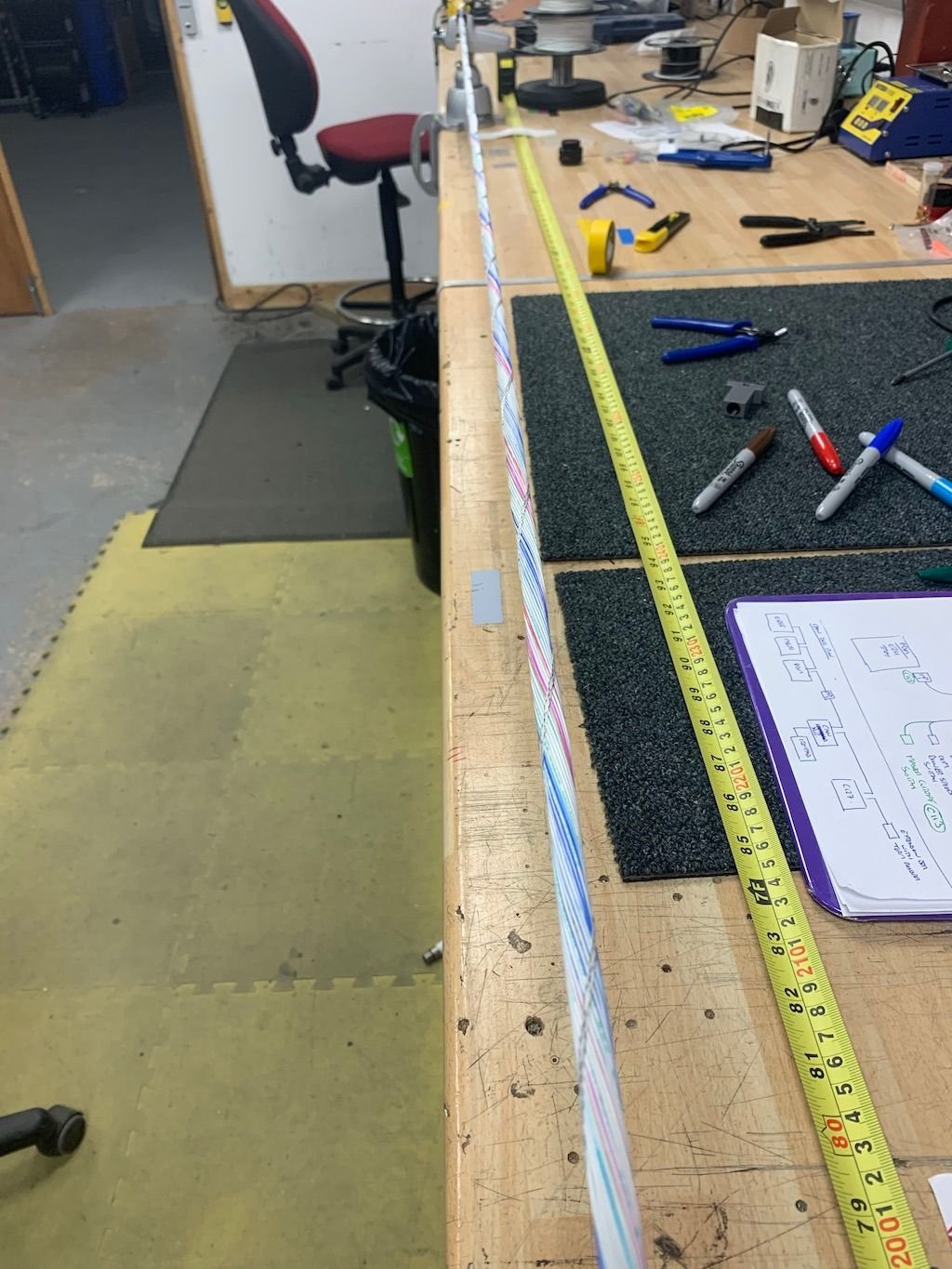 The next thing is a cunning little wire striper that takes a sharpie in one end and lets you pass an 18 or 22 AWG cable through it to produce a coloured stripe on it.