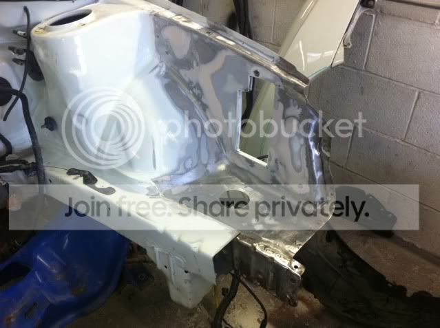 And there will be no pipework, either FMIC or intake, going from the engine bay through the inner wing, so I welded that up also.