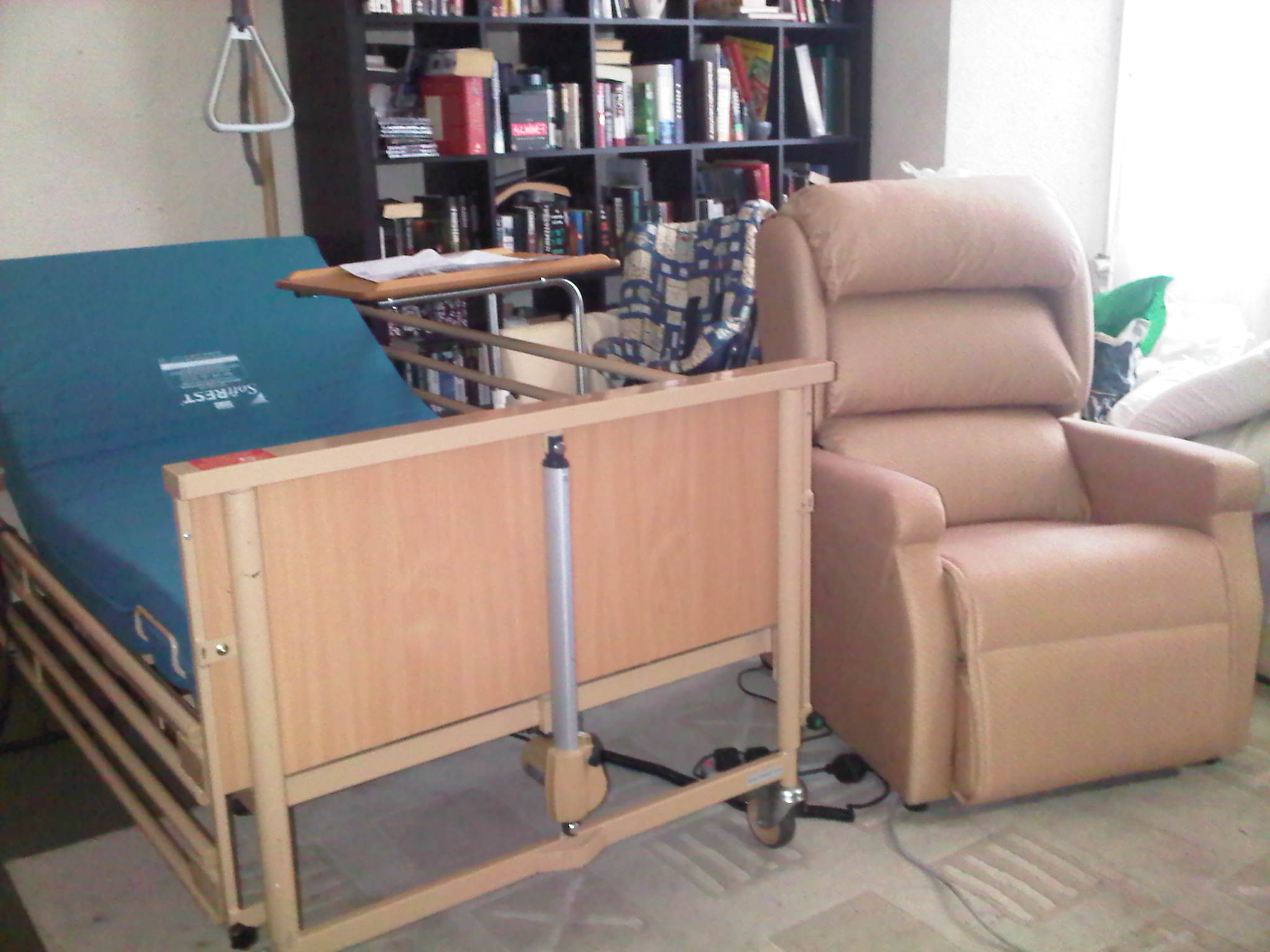 We now hae a makeshift hospital room in the lounge, with everything else stuffed out of the way. Credit to MediQuip and everyone dealing with all this stuff.