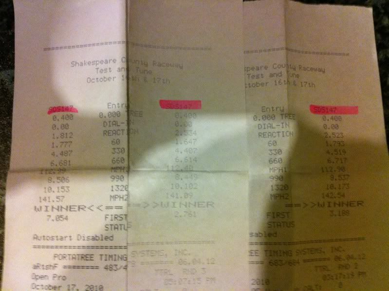 Well just got in from Shakey, no new thread you will notice as still no 9. 3 X 10.1's !! Did not have best of luck today, first run had a misfire that was put down due to fouled plugs on the leaded fuel, thought I would just run again to see if it cleared and still there so plugs cleaned and problem solved. Then it was about getting it off the line, one run I crept and started the timing before I launched so 2 second 60 ft and a 10.3 ! Then too early with change to second and 10.1.