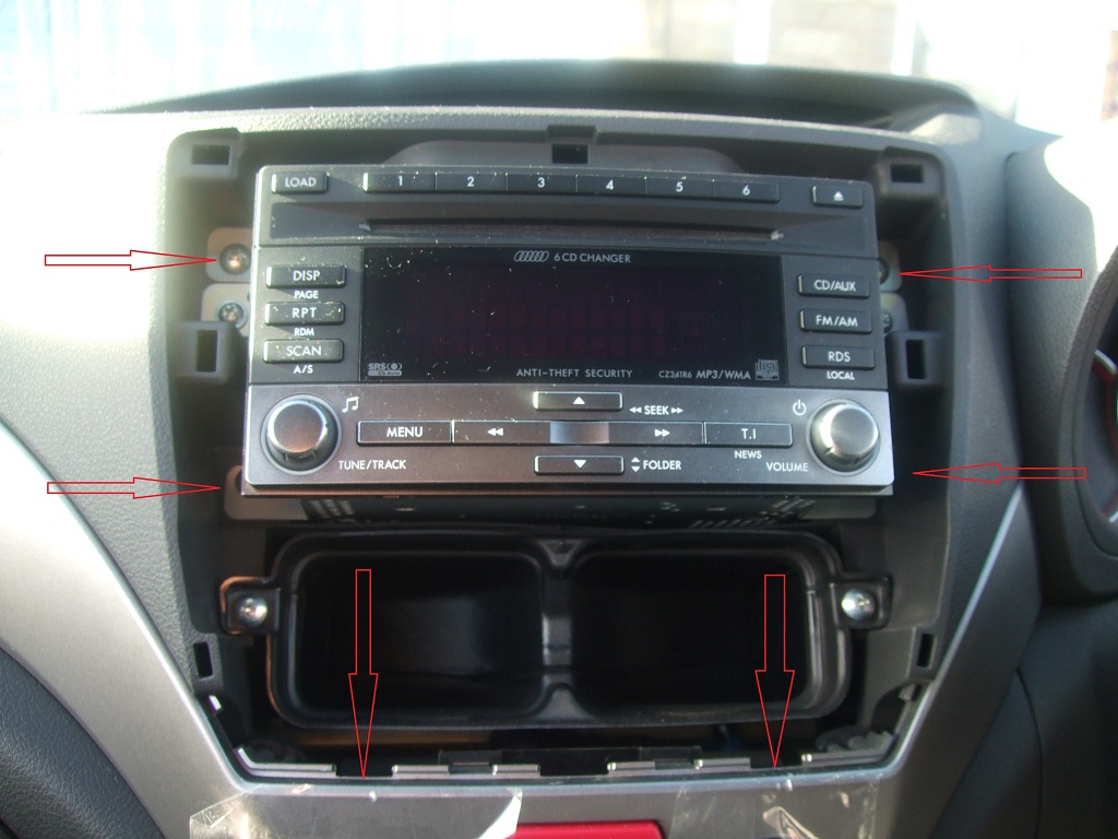 HU is held in place by 4 screws. And on the non-nav unit like mine, there are 4 connections, the large white comnnector block, smaller 8 pin aux-in block, earth lead and aerial.