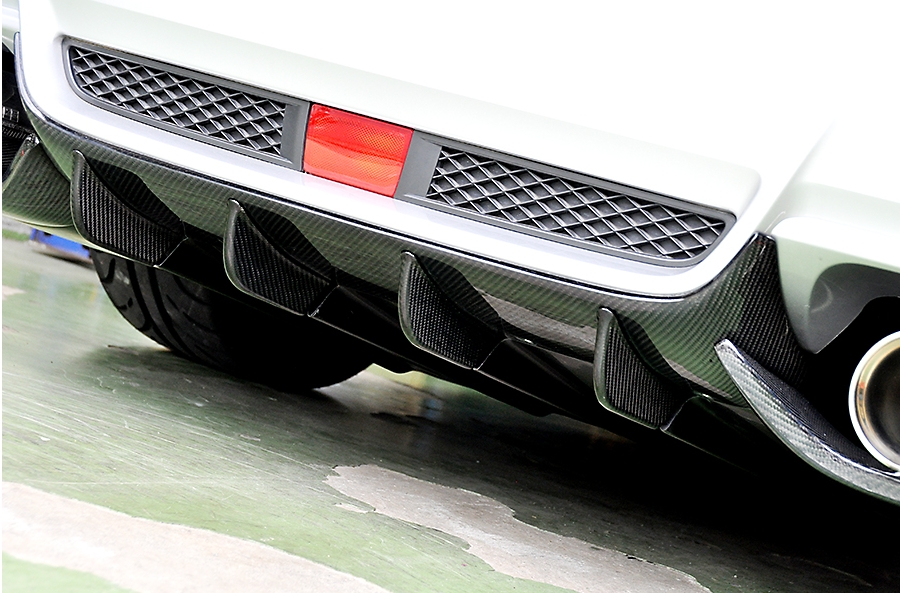 "Liberal Auto" full width rear diffuser currently off for repair and repaint. (A loose "bolted down" speed hump made contact with the underspoiler.