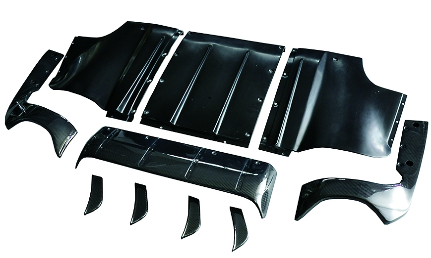 Diffuser arrived as an FRP kit which need a certain amount of work to sort out the separate vanes on the rear bumper attached section.