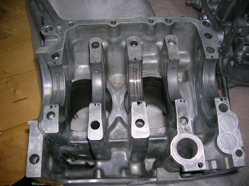 And i'm pleased i did because as i was doing this i noticed that like a proper numpty i had managed to put one of the pistons the wrong way round. Doh!, and apart from that even though i had been what i thought was very spareing and careful with the sealant there was a couple of bits that were obscuring the edges of the bearing oil ways, which at the very least would not be good for flow.
