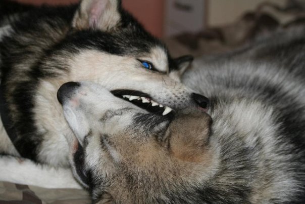 Gets a bit hairy when one decides the other is playing too rough, and starts trying to protect me.