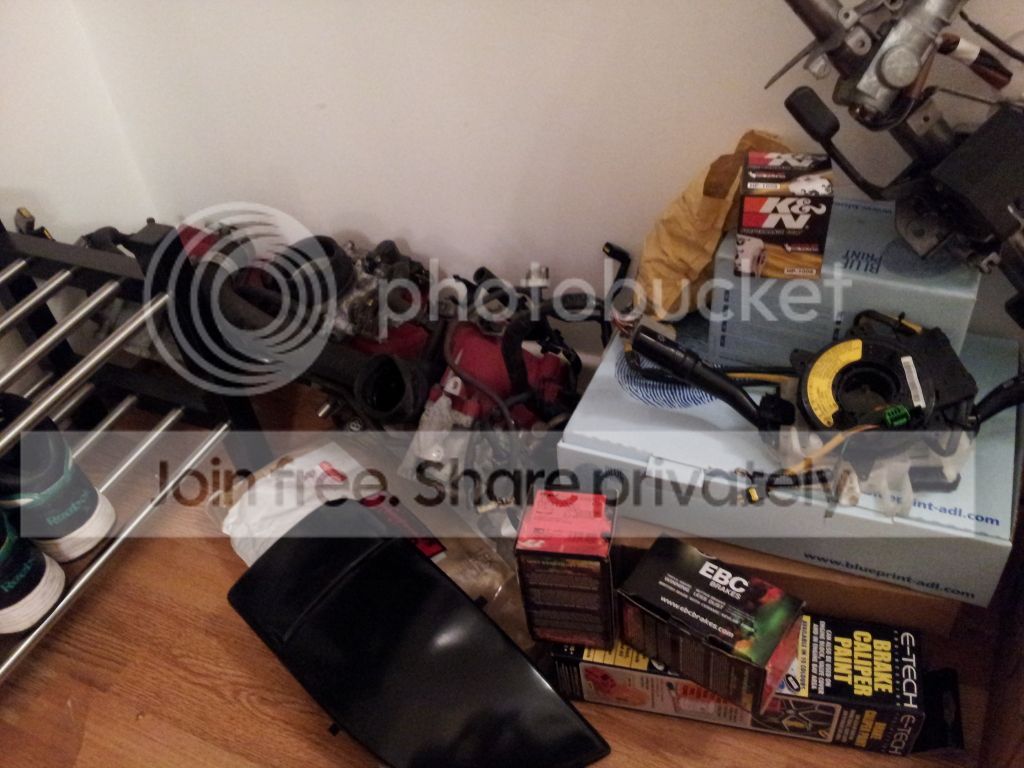 and finally the parts i have so far... still waiting on my doorlocks, pads and oil filter, gearbox oil, inlet manifold and a few other things...