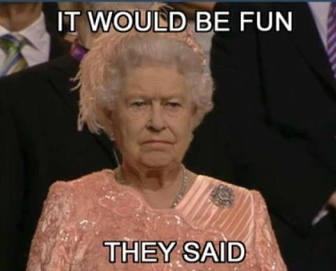 I must admit I didn't seen the Queen crack her face, she looked like Phillip had farted all night.