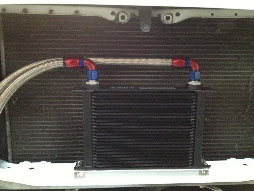 The core is a rotated toyo sports cooler and the pipe work is custom made, one from alloy the other from stainless, routed under the headlamps for more direct and less bendy route lol