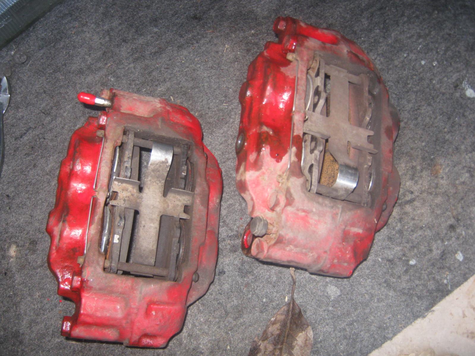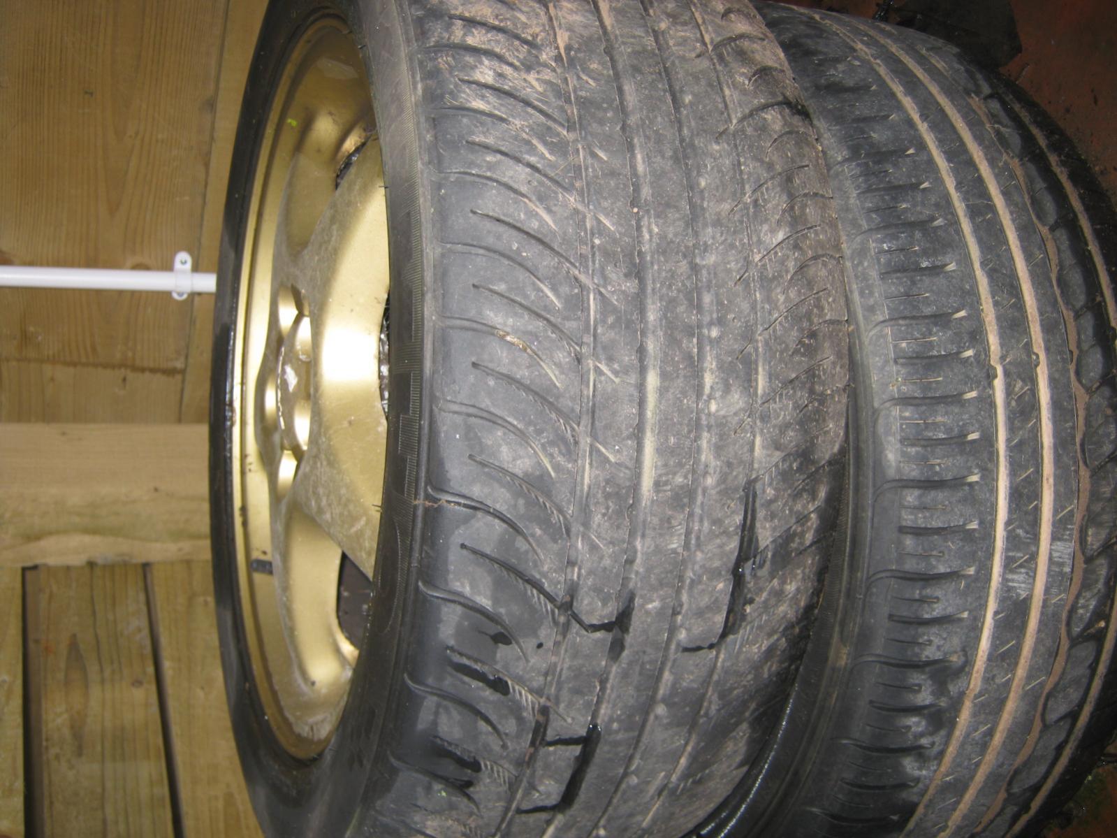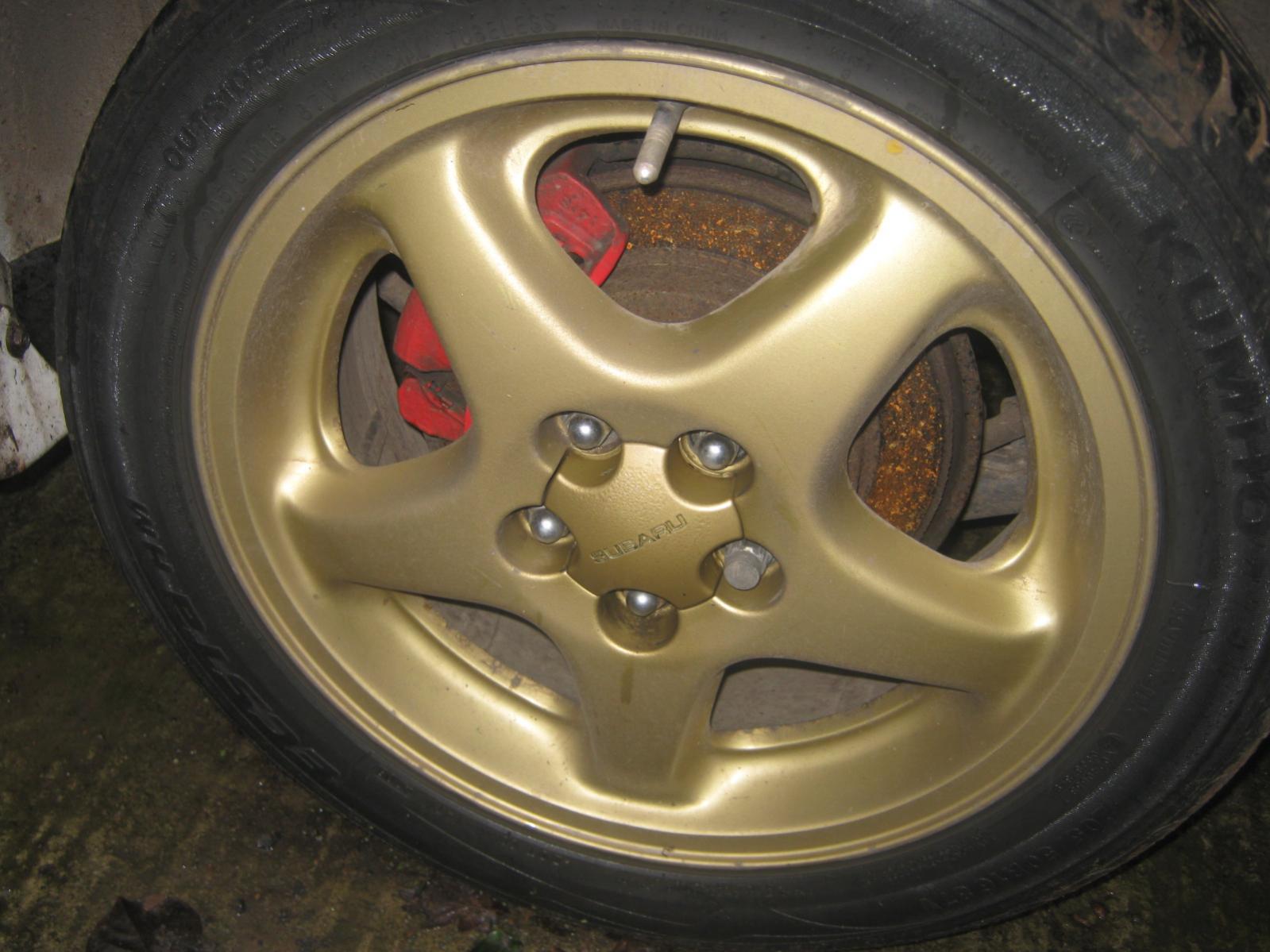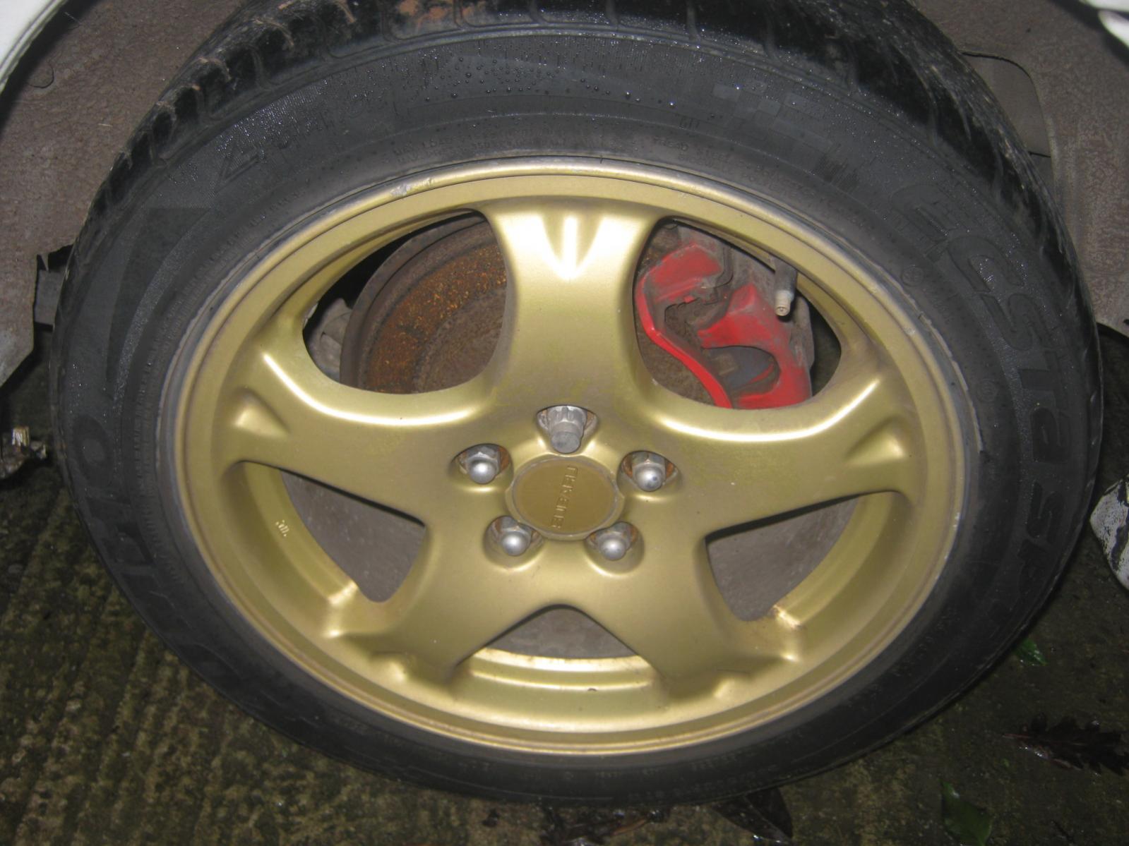 I have one full set of gold 16" with tyres that are early wheels (ie don't fit over 4 pots) and a set of 3 gold 16" with tyres that are the later ones that fit over the 4 pots (there is 4 but the 4th has some scratch damage).