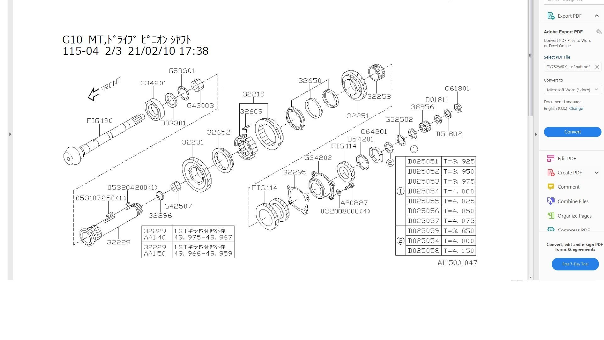 RSTR-1095B = 32614*B on Main Shaft Diagram ... used for 3rd, 4th, and 5th gears.