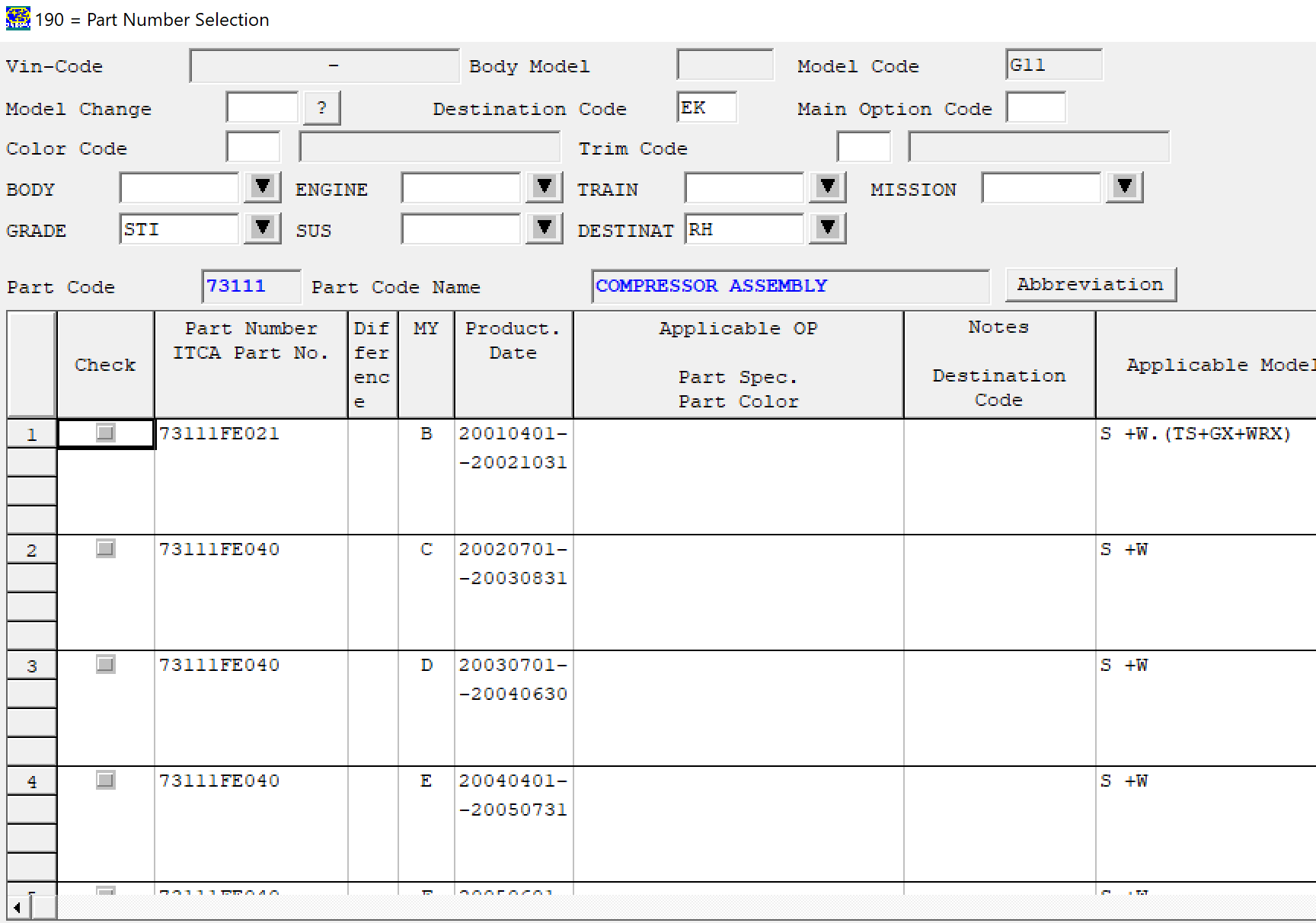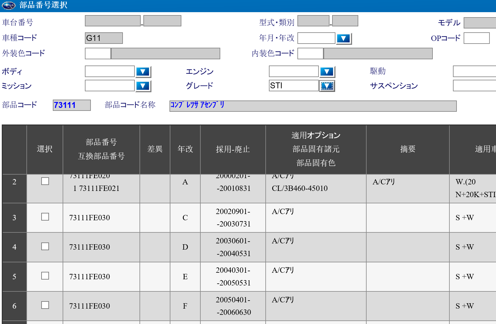 My ac compressor failed. I ordered one from a parts company but the one that turned up is model number 73111fe030.