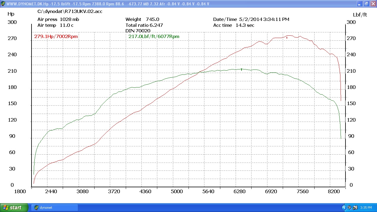 He also did a dyno run with the following results