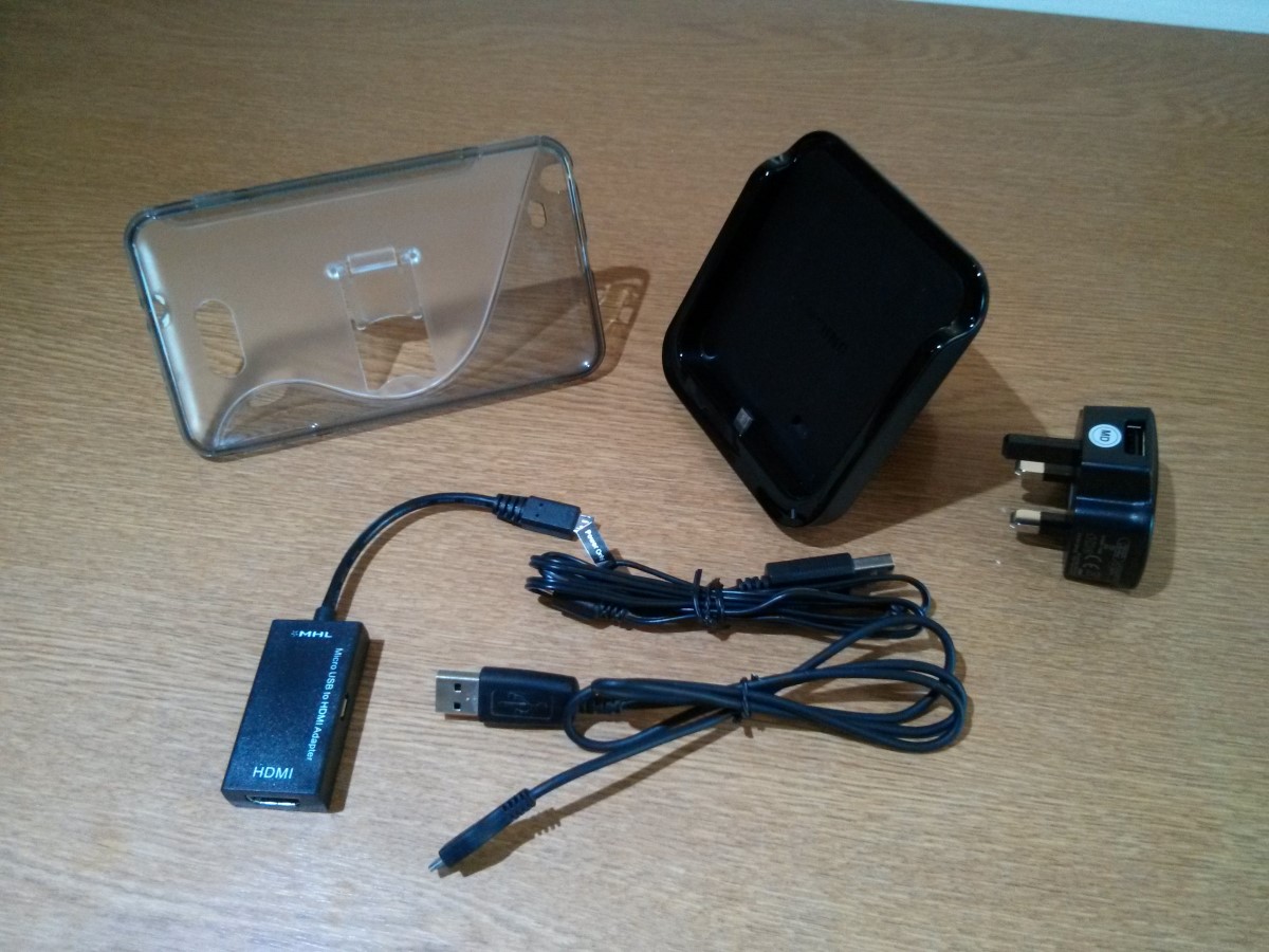 - Boxed with USB cable, mains adaptor and power cable for dock