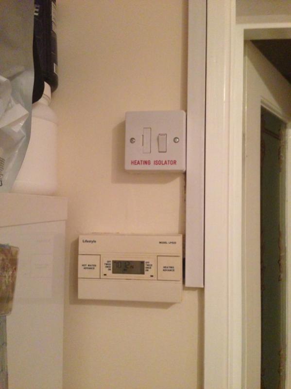 There's three pipes from the boiler, a heating "isolator" and the last unmarked switch is apparently the immersion switch.