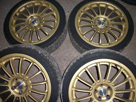 17x7 Gold O.Z. for classic shape EK48 offset. Come with Goodyear 215/40 ZR tires with decent tread still left. approx 50%. Wheels are in good condition really just need a good cleaning. Minimal scratches.