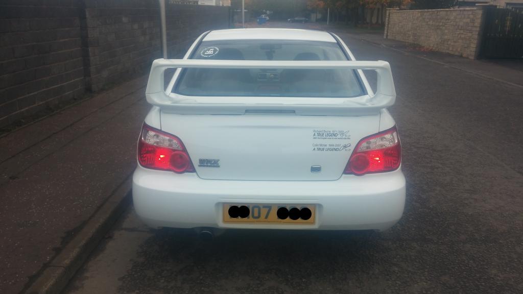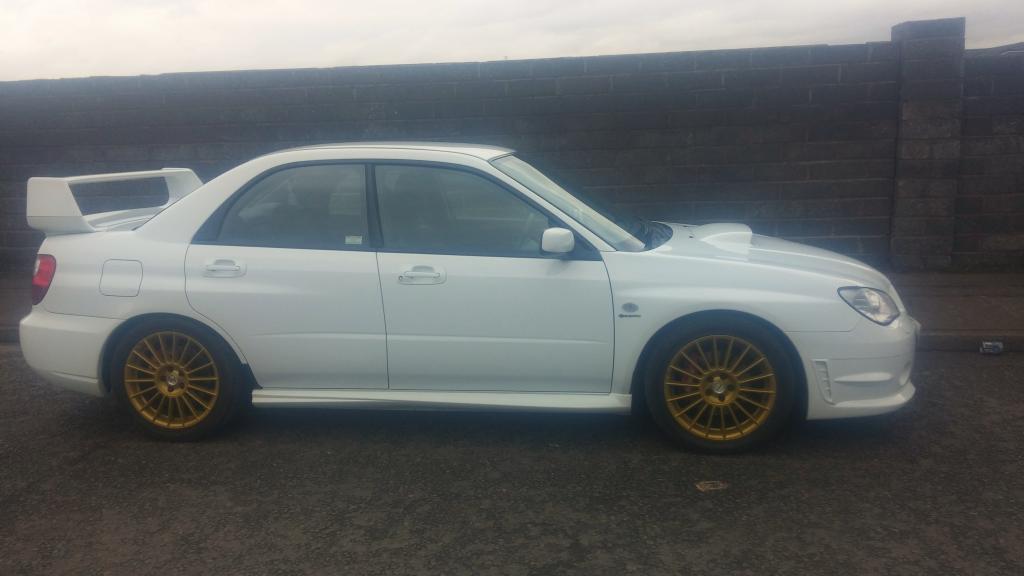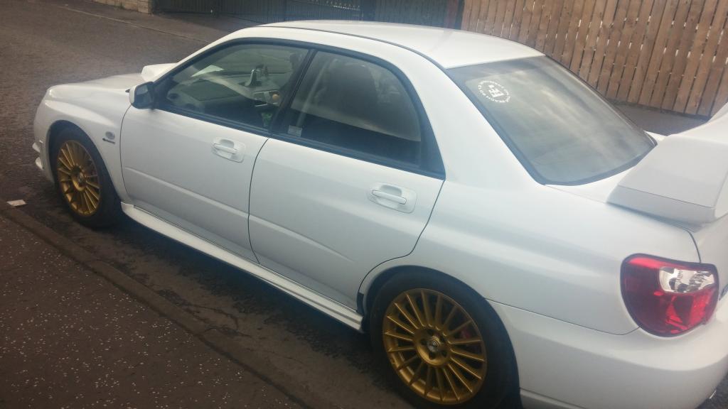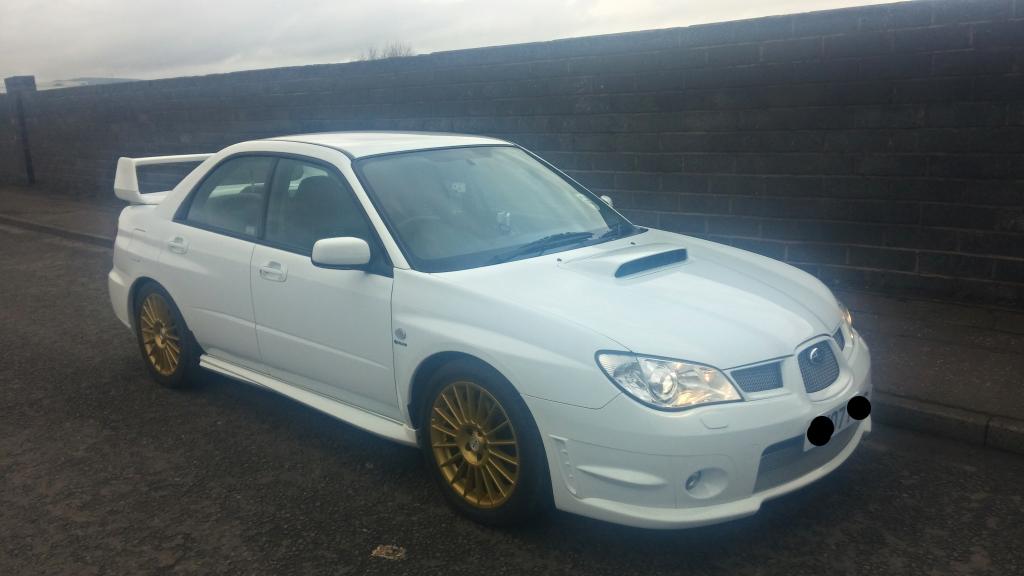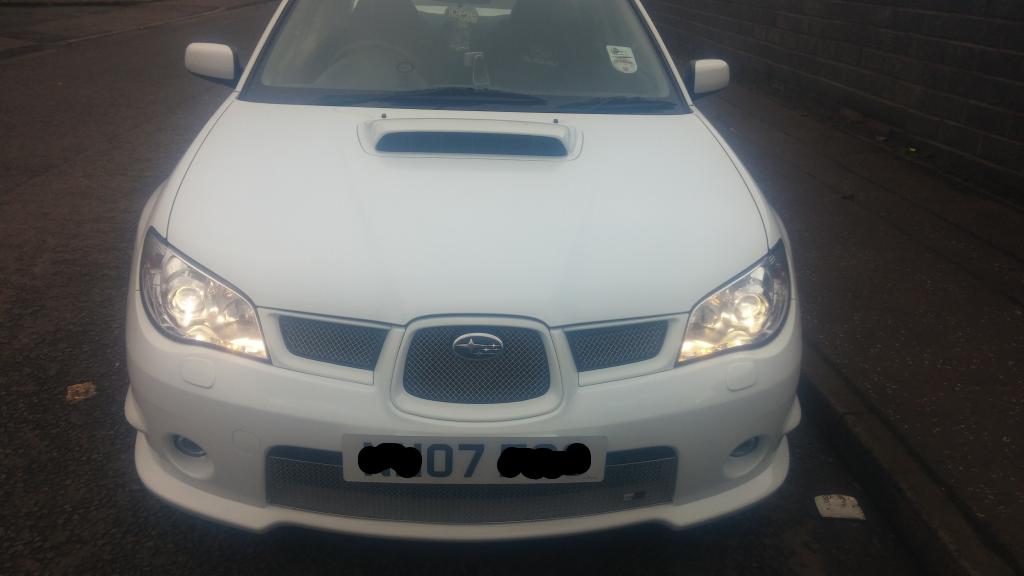 The time has come to sell my car, Subaru Impreza wrx 2007 07 Hawkeye, I bought the car in Aug 13, having waited along time for a rare white one to come up for sale, the car has hpi clear, 2 remote keys, full service history/records, service/booklets manuals, every mot and loads of receipts, it was completely standard apart from sti high level spoiler and milltek cat back exhaust, one of the reasons i bought it besides the colour is that it had just had a standard full rebuild at 51000 miles so i knew everything was new and fresh when i bought it at 54000 miles. Over the last 14 months i have added 17" fox alloys, tein s lowering springs, full zun sport chrome grills, Blob sti rear lights, full grooved and drilled brake disks and pads, Jvc bluetooth dvd head unit, genuine subaru front seat covers, subaru pro-r alloy gear ****, and subaru boot liner.