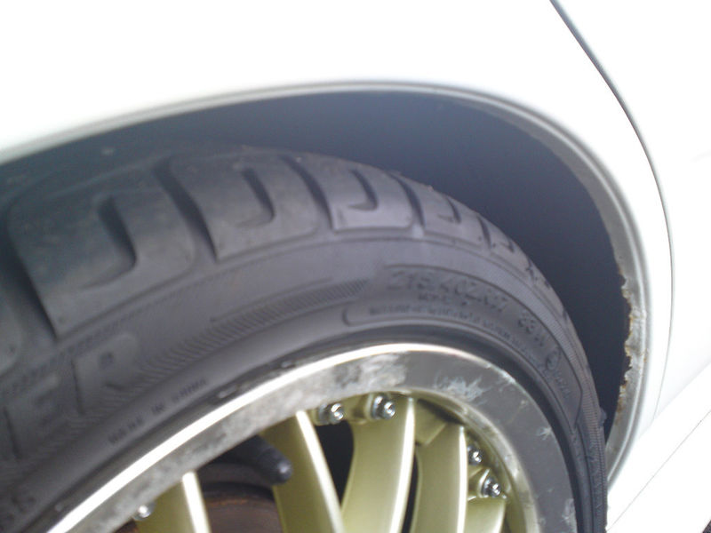 17 inch gold BK racing alloys with excellent tread on tyres although the laquer has slightly flaked on rim. 40mm profile.
