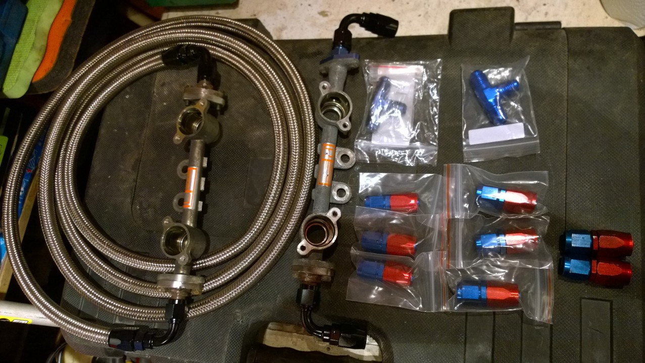 Parallel rail setup for a version 1/2 Impreza turbo, comes complete to make your own braided lines with AN6 fixings, both rails and 4 rail ends.