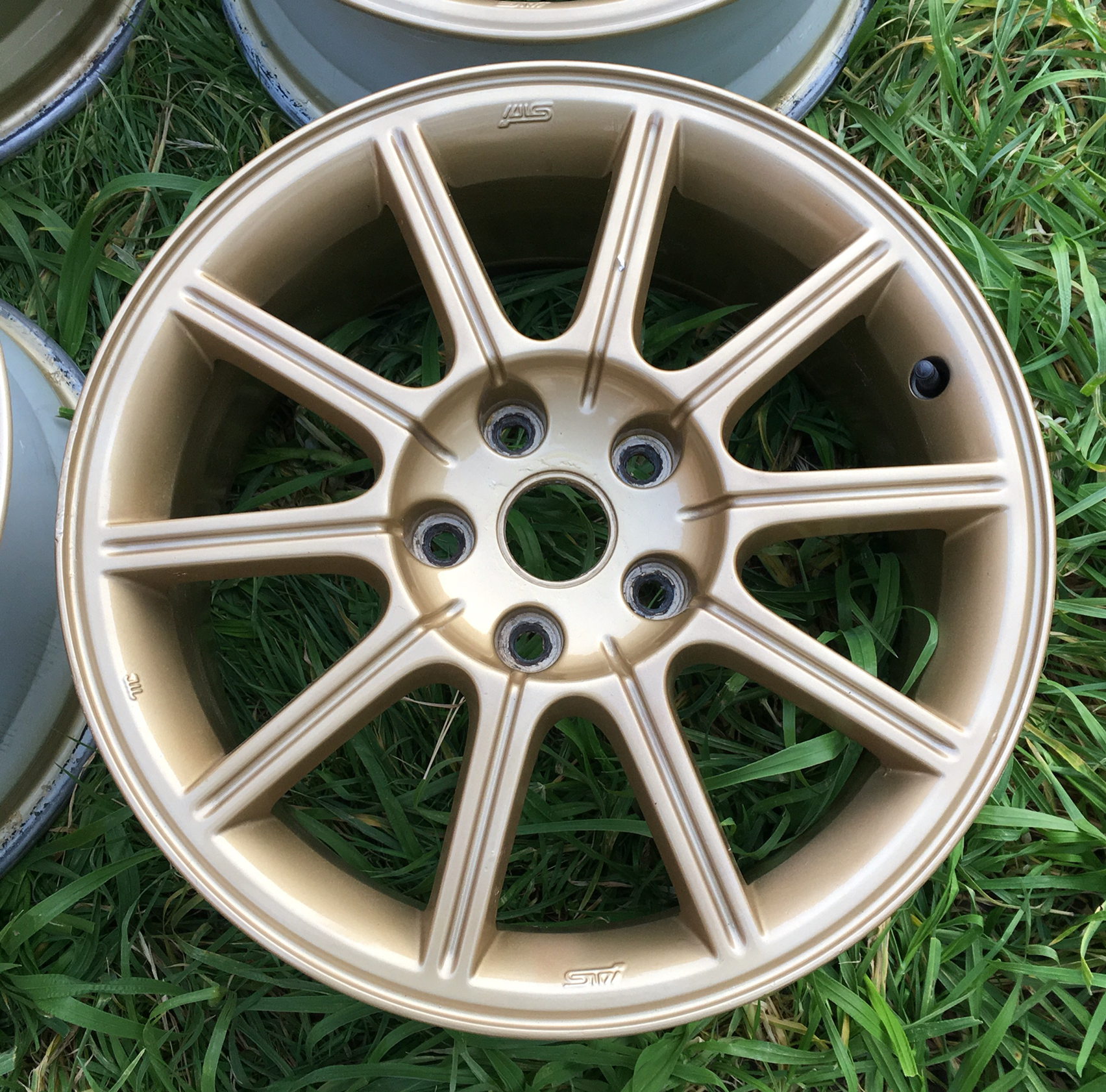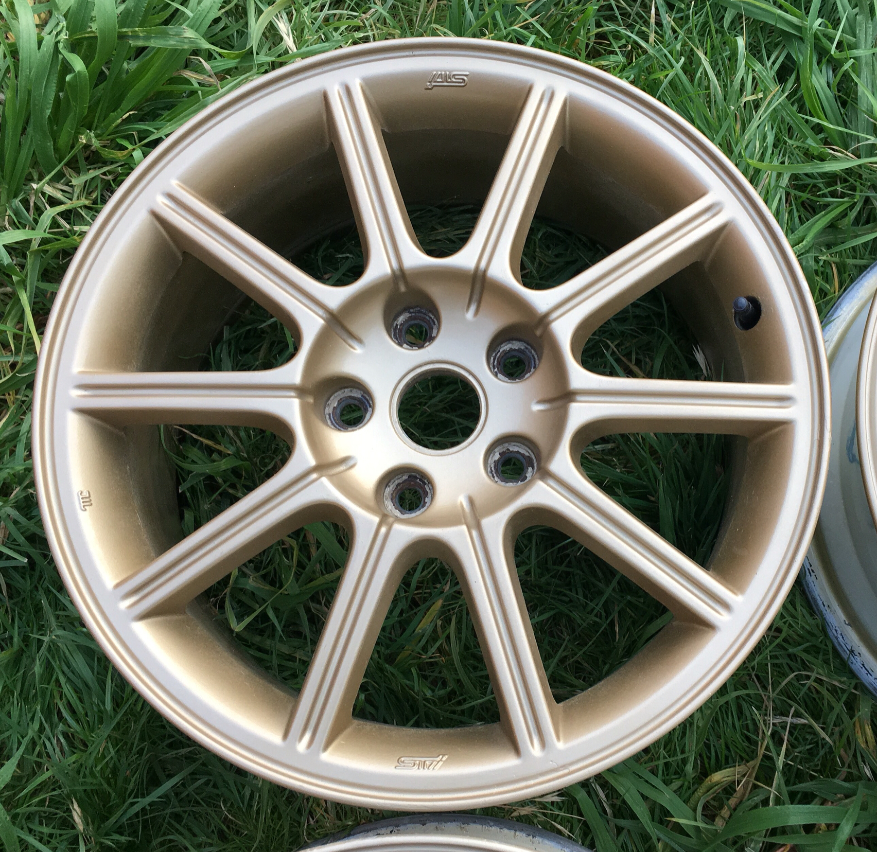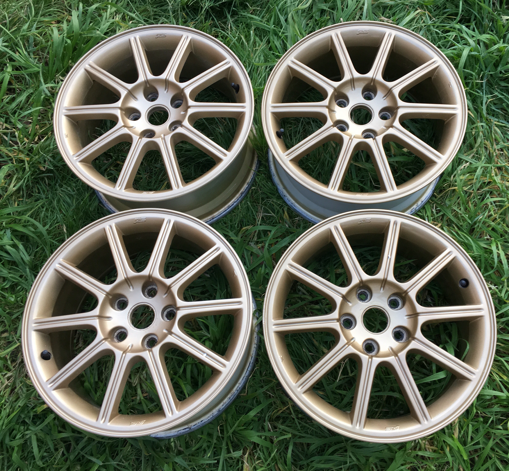 They are the original 17" Enkei alloys that come fitted as standard to the widetrack. They are In good used condition in gold. All straight with no buckles or flat spots.