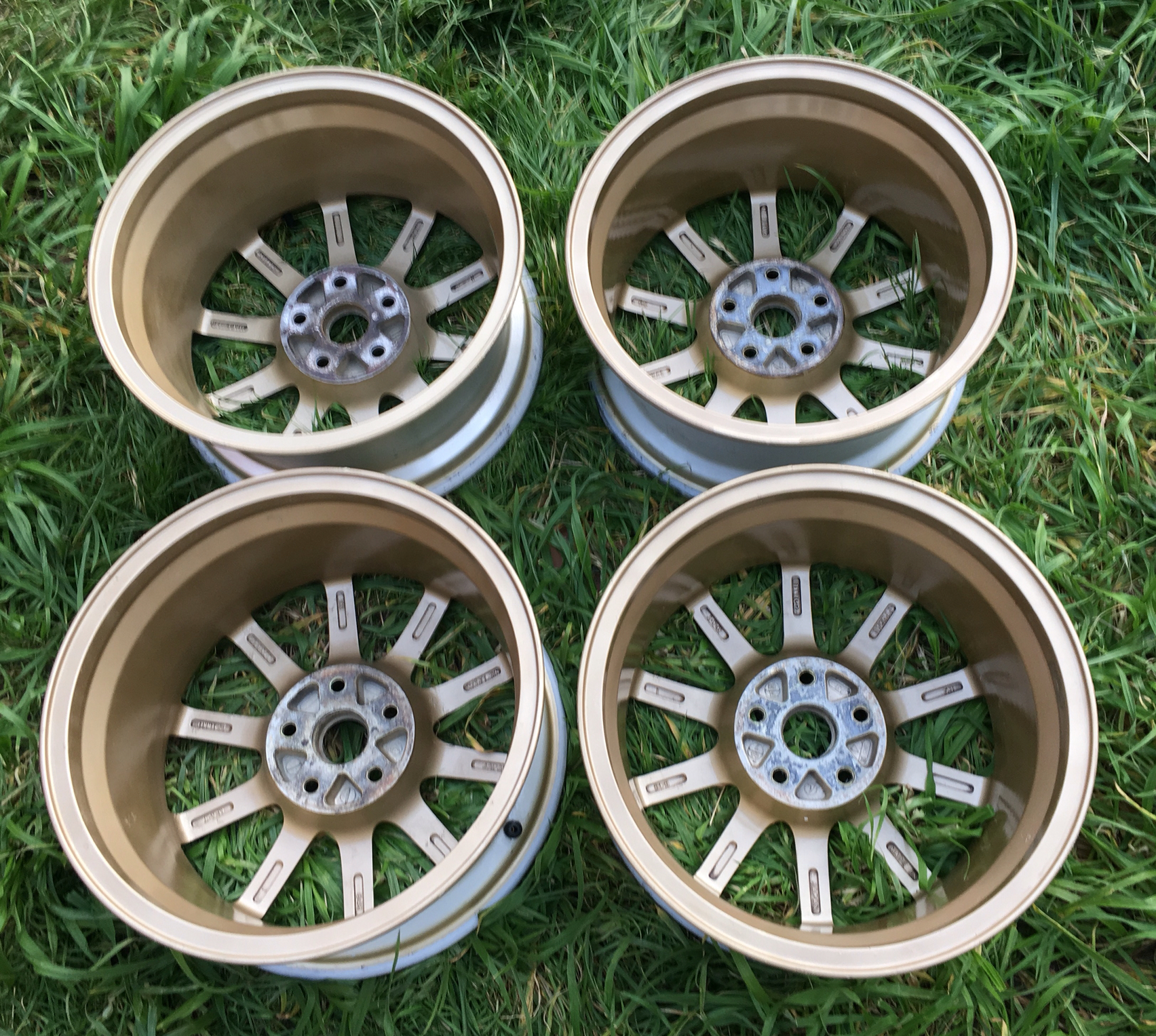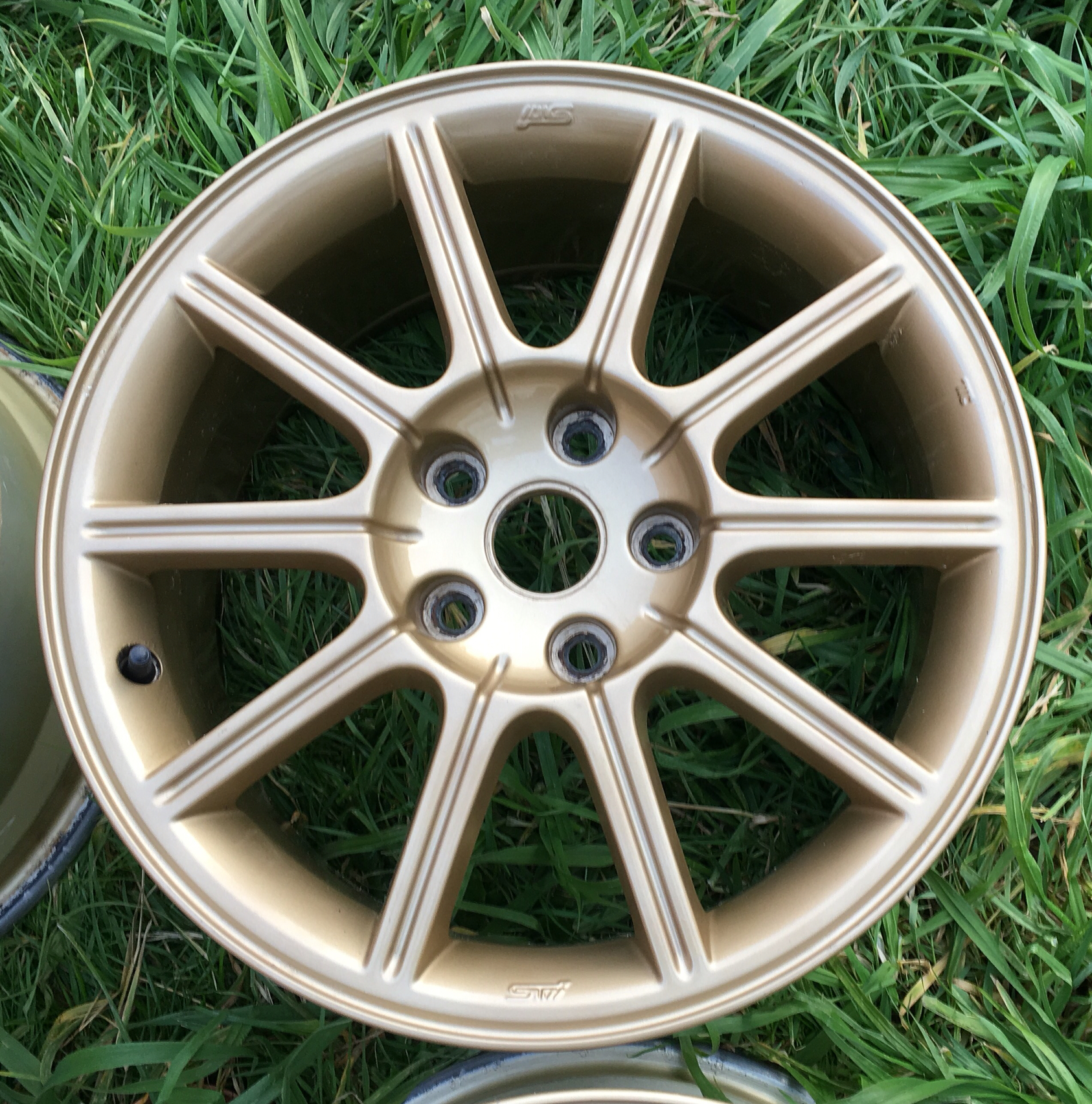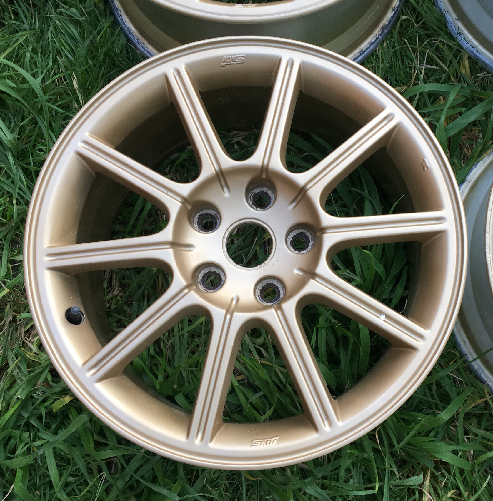 They are the original 17" Enkei alloys that come fitted as standard to the widetrack. They are In good used condition in gold. All straight with no buckles or flat spots.